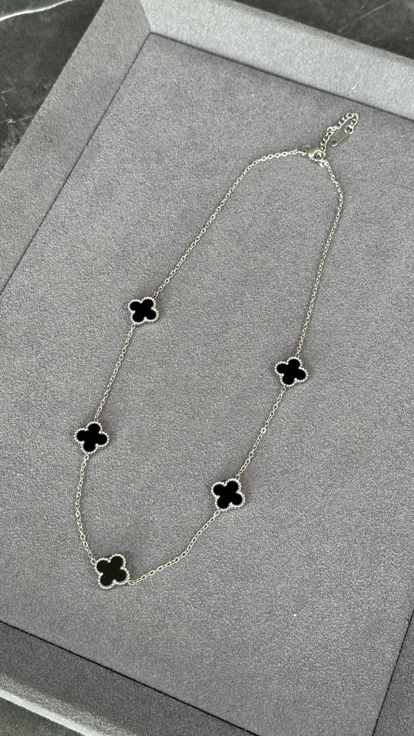 COLLAR CINCO TRÉBOL PLATA / NEGRO cantidad