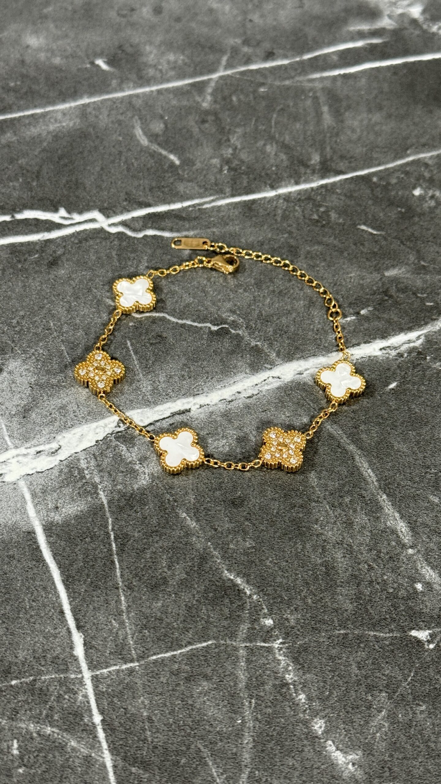 PULSERA TRÉBOL BLANCO / ORO BRILLANTES